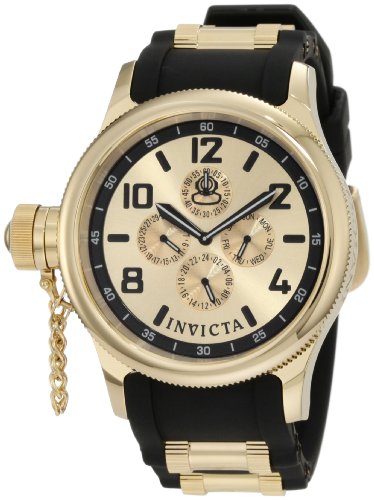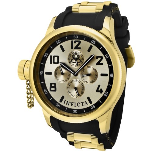 -. Title : Invicta Men's 1803 Russian Diver Gold Dial Black Polyurethane Watch