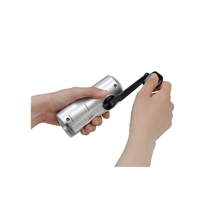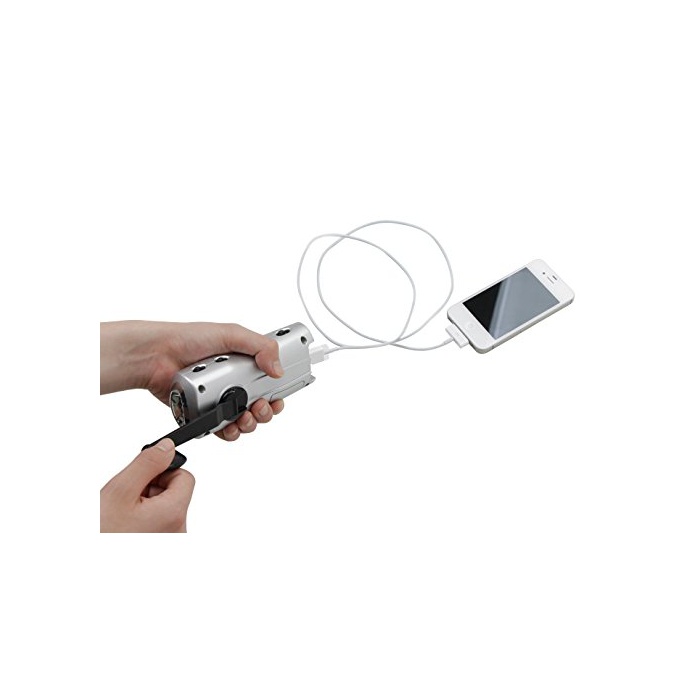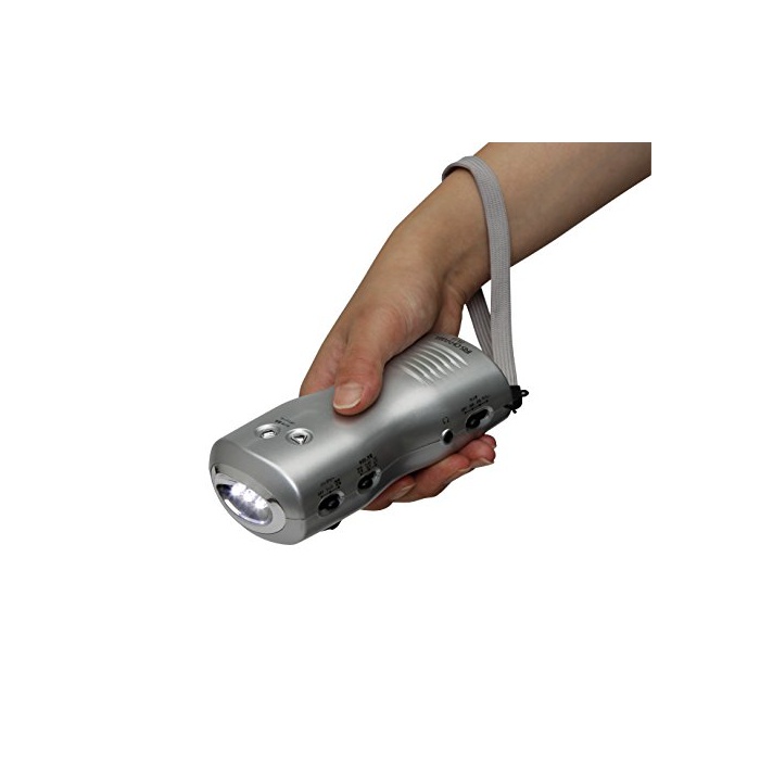 사양:사용 전지:리튬 이온 중합체 전지(내장) 전지 용량:450mAh 정격출력:3.7V/500mA 최대 출력:1.85W 수동식 충전(다이나《모》) 정격출력:4.2V/500mA 최대 출력:2.1W LED라이트:백색3등 라디오:AM/FM 긴급한 볼일 싸이렌