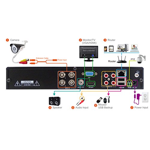 Set up a CCTV surveillance system with this DVR recorder for peace of mind while away from home. Supports up to 4 high resolution TVI/AHD 1080P cameras (sold separately).