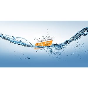 Waterproof Samsung EVO 16GB microSD Memory Card can survive up to 24 hours in seawater. |