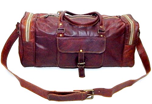 Firu-Handmade 20" Vintage Style Leather Brown Duffel Gym Sports Luggage Travel Bag Handmade