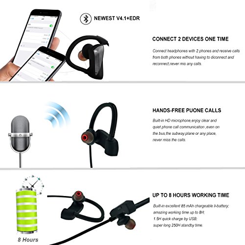 Wireless Earbuds sind mit Bluetooth V4.1, Super Bass, 3D Stereo-Sound und klar innerhalb von 10 Metern konzipiert.