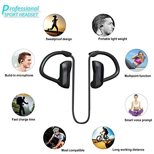Fozela Sport Bluetooth Kopfhorer, Bluetooth 4.1 Stereo Drahtlos Kopfhorer Ohrhorer Headsets mit beweglicher Aufladung fur iPhone 7/ 6 Plus iPad Smartphone
