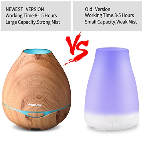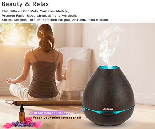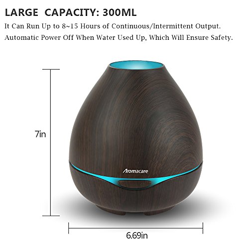 Aromatherapy Essential Oil Diffuser, Aromacare 300ml Cool Mist Aroma Humidifier, Wood Grain Quiet Air Humidifier with Waterless Auto Shut-off for Office/Home/Bedroom/Living Room/Yoga/Spa/Study-Brown