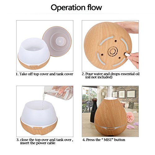 Aromacare Essential Oil Diffuser, 300ml Portable Ultrasonic Aromatherapy Diffuser with Wood Grain,Waterless Auto Shut-off,Adjustable Mist Mode,7 Color Changing LED Lights for Home Baby Office - Yellow