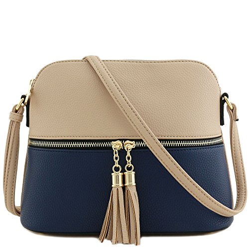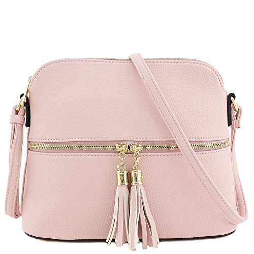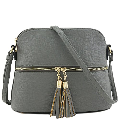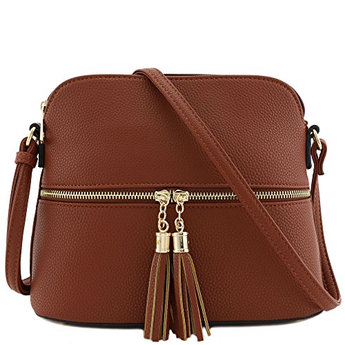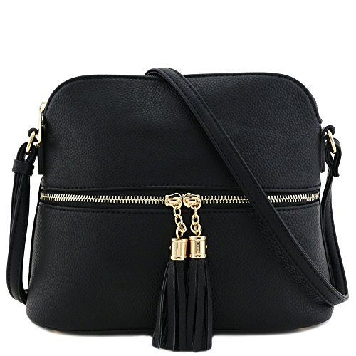 This tassel zipper pocket medium size crossbody bag makes easy to organize your everyday items.