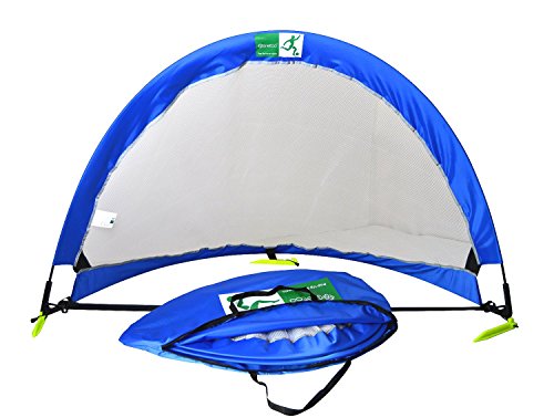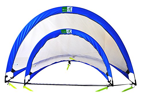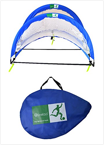 Pair of ultra-portable goals (pack of 2) for training and small-sided games. No assembly required, Pop-up design, just take out of carry bag and unfold to open. Once done, simply twist/fold and put back into 1 inch flat oval carry bag.The GreEco Pop up goal is the easiest goal to get playing soccer quick - Enjoy soccer practice in any place & any time!