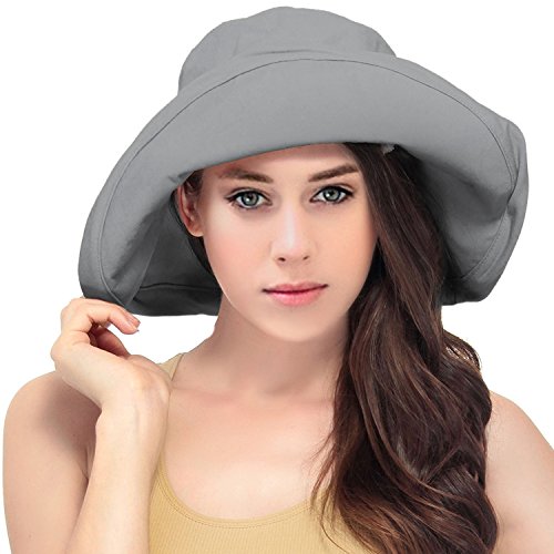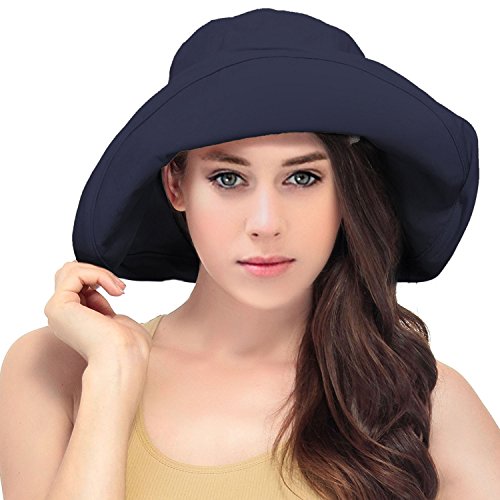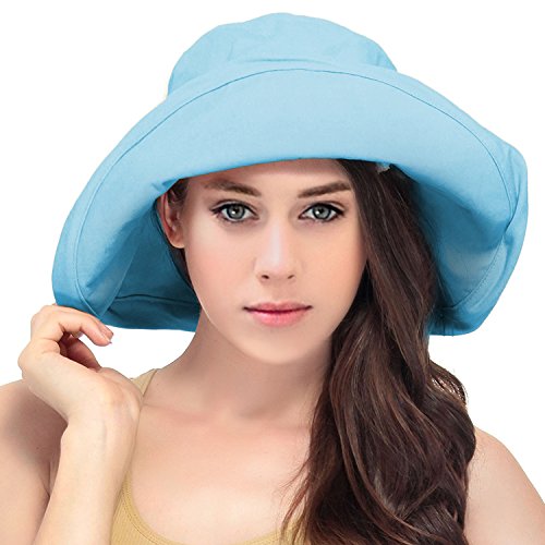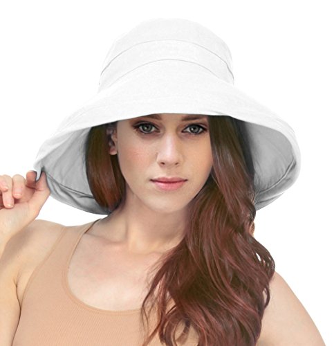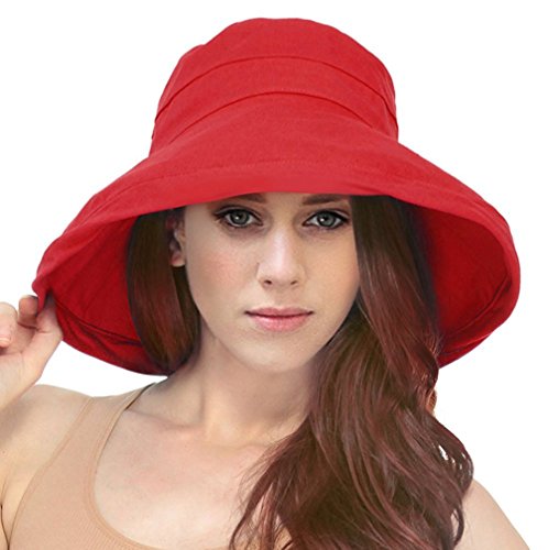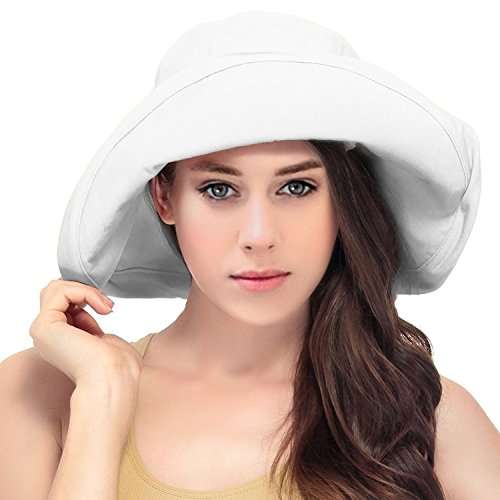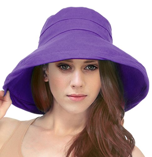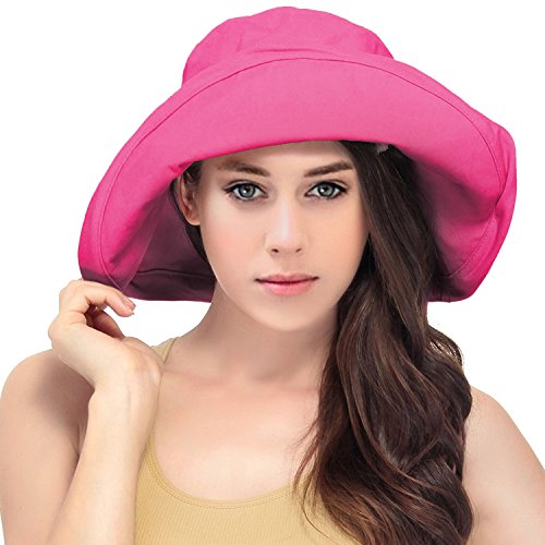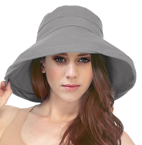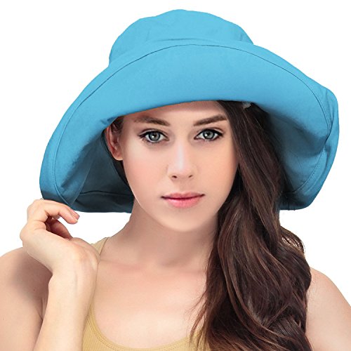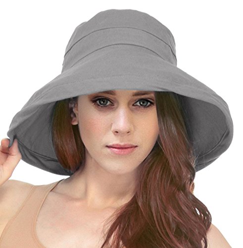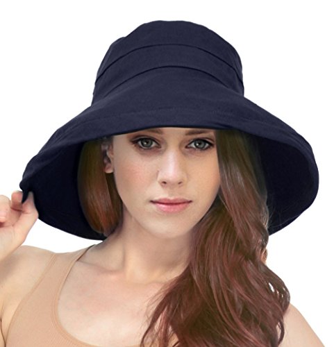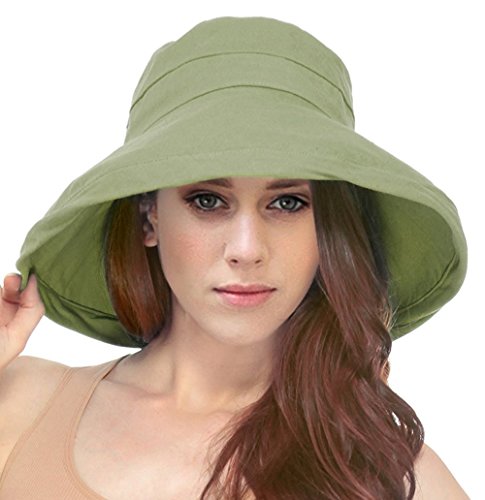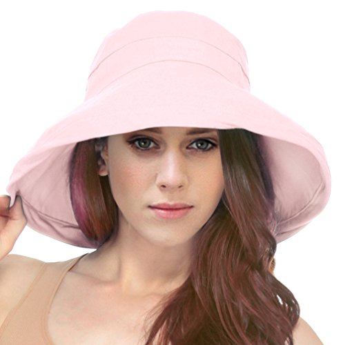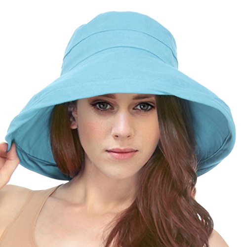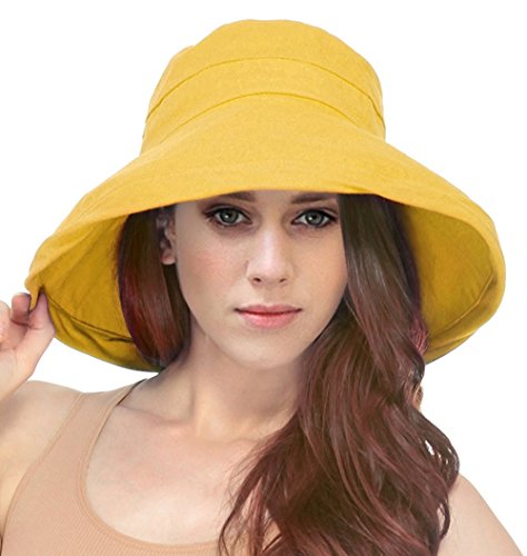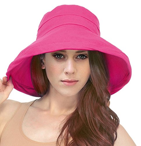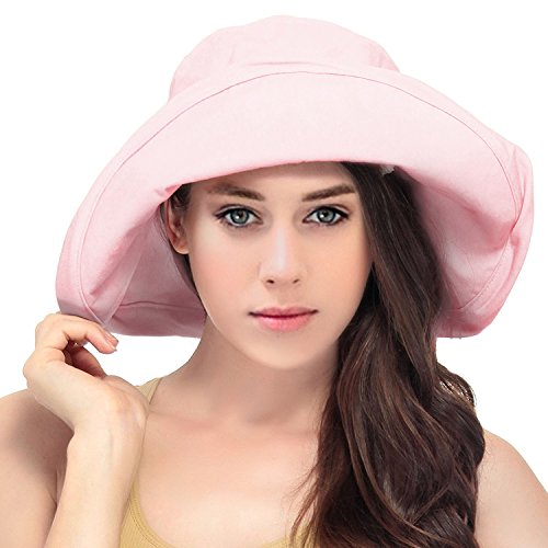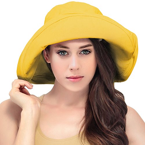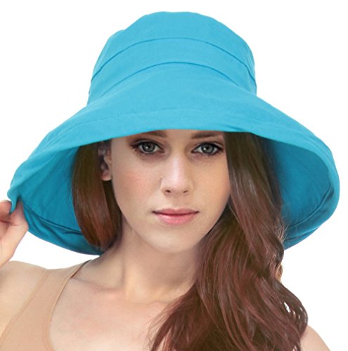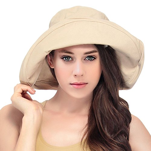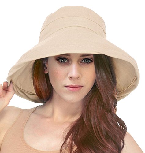 | Women's Summer Cotton Bucket Beach Hat w/ Wide Fold-Up Brim |