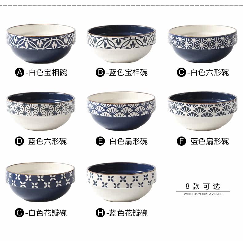 创意日式餐具釉下彩陶瓷碗家用中式大号陶瓷碗米饭碗汤碗护边碗