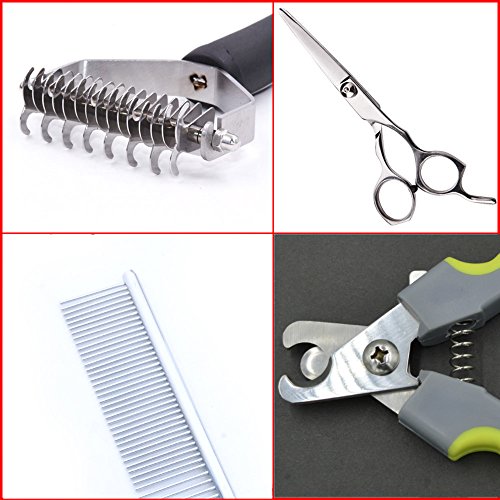 Maxshop Pet Grooming Tools Kit、5 Pieces Professional Dog Grooming Kit Nail Clippers、Nail File、Open Knot Rakes Comb、Pet Grooming Stainless Comb 、Grooming scissors for Pet Dog and Cat