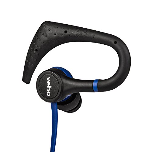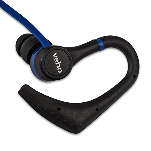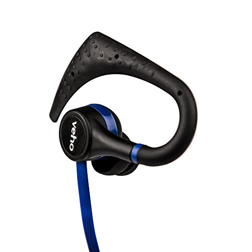 Veho VEP-007-ZB1 In-Ear Sport Drahtlose Bluetooth Kopfhorer mit Spielhaken/Mikrofon/Fernbedienung/Flex Anti-Tangle Kabel blau