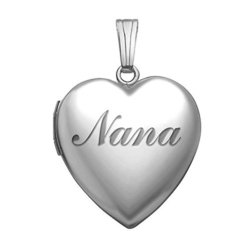- This Heart Locket is .925 Solid Sterling Silver and holds 2 photos. The front of this locket is high polished with Nana engraved in script on it. The inside and reverse side of this stunning locket can be engraved with a personal message. This is the perfect gift for any occasion.
