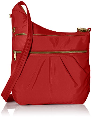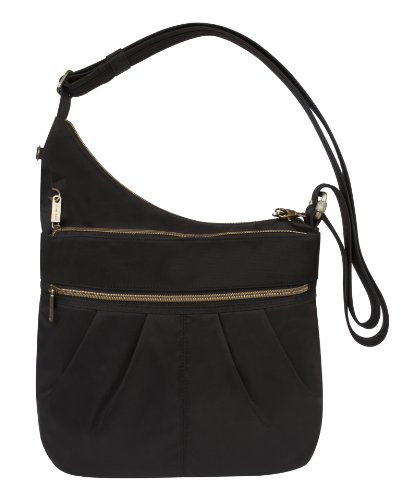 When planning your next adventure don't think twice about being pickpocketed with this bag you get 3 locking compartments. Slash-proof construction, adjustable, cut-proof shoulder strap which attaches to post or chair the main compartment has RFID blocking card and passport slots and the rear zip pocket includes tethered key clip with LED light. .For more than 35 years, Travelon has been making travel easier and safer with products that provide protection, peace-of-mind, safety, security and organization. Travelon’s Anti-Theft Crossbody and travel bags protect from pickpockets and thieves and are customer top rated. Classic silhouettes in soft fabrics provide great function and fashion.Feature