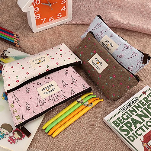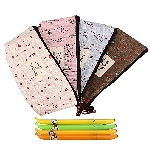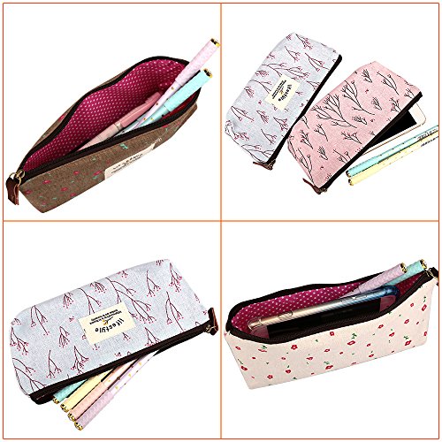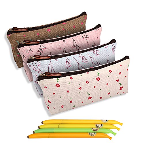 M Floral Canvas Pen Pencil Stationery Case Cosmetic Make Up Bag Pouch with Erasable Pen (4 Pack)