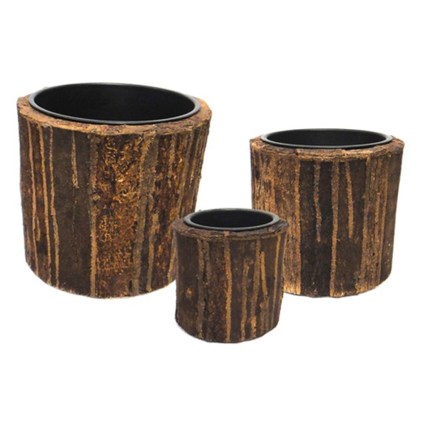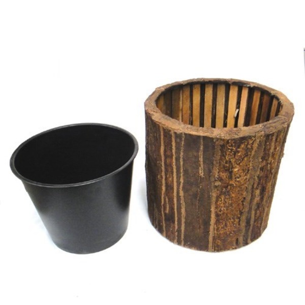 木の皮を丁寧に編みこんだアジアンテイストプランターカバー