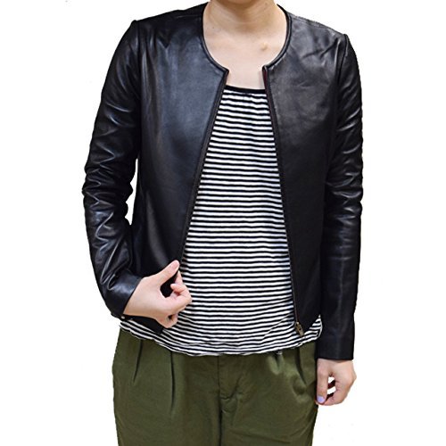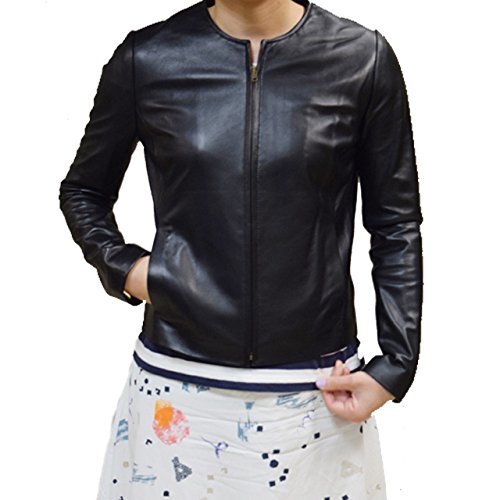 -. Title : ライダースジャケット 襟無し 本革 レザージャケット レディース ラムレザー