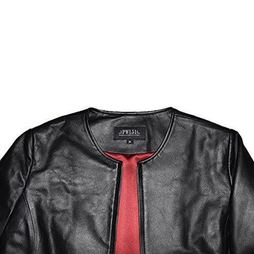 -. Feature : 素材構成: 表地:羊革 裏地:ポリエステル  /送料無料/ サイズ詳細は下記商品説明に記載 ※サイズ交換1回無料 /モデル着用サイズ S 身長156cm B85×W66 肩幅40cm 肩から手首46cm /トルソー着用サイズ M B85×W63 肩幅40cm / 高級感が有りながら、軽くて着やすいイタリア製ラムレザーを使用したシンプルな定番の襟無し本革シングルライダース / ハードなイメージの革ジャンですが、襟無しタイプはとてもシンプルですラムレザーは柔らかく、とても軽い上、本革特有の高級感があります さらに色んな服に合わせやすく活躍間違いなしです / 本来、量産品ではパーツ別に複数の職人で縫製したものを仕上げる事が多いですが、こちらの商品は韓国提携工房にて一人の職人が1着すべてを担当し、丁寧に仕上げております 自社生産管理、直輸入です