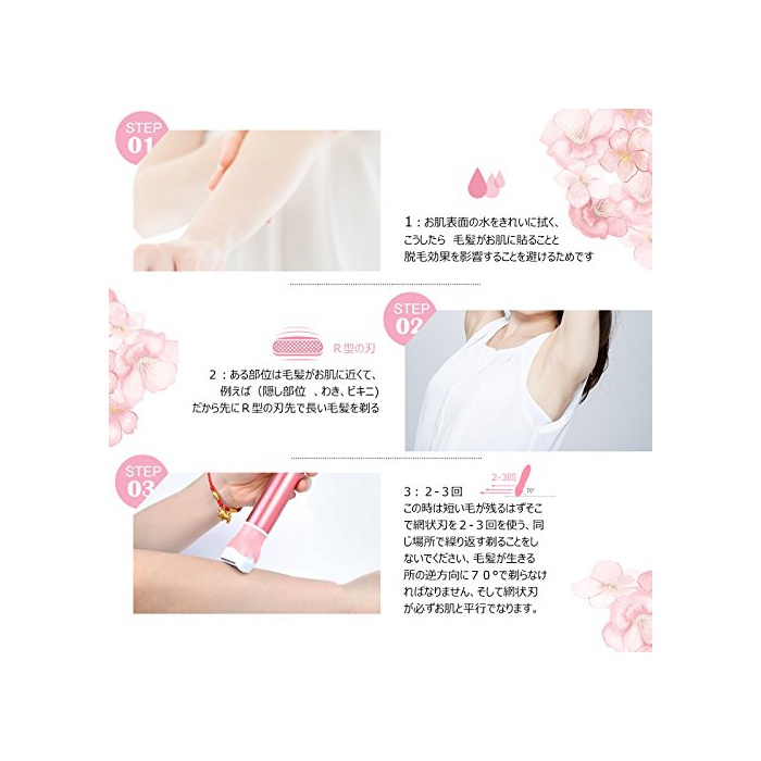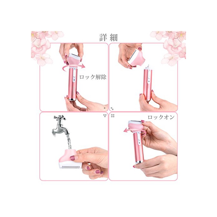헤드내 인세척 가능:헤드는 떼내어 가능한 설계에,사용 후의 청소도 간단하게 세척 수 있고깨끗하게 심부름꾼 있던 뿐입니다.건습양용에,욕실에서도 사용 가능.목욕탕에 들어간후,따뜻해져 피부(기)가 부드러워지는 때문에,탈모하기 쉽고, 피부에 상냥한 감촉입니다.본체는 방수 기능이 붙어 있지 않으므로, 주의하여 주십시오.