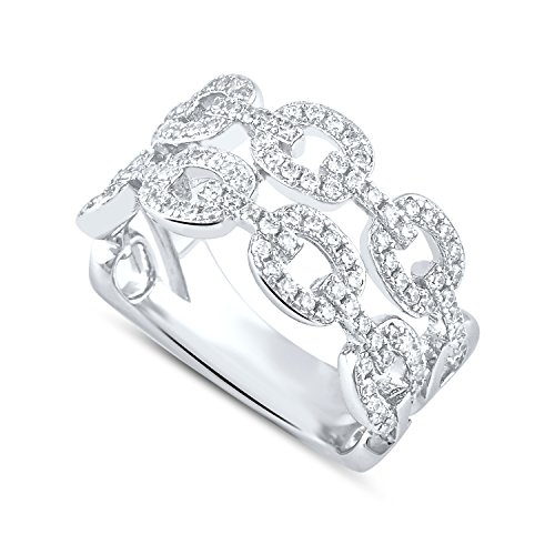 -. Title : Sterling Silver Simulated Diamond Chain Ring (Size 5 - 9)