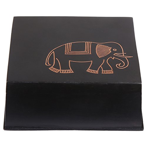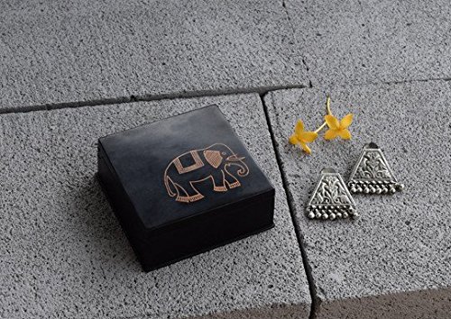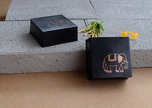 This miniature box, handcrafted in Bidri, the 14th century metal handicraft has striking inlay artwork. The blackened alloy of zinc and copper is traditionally inlaid with thin sheets of pure silver. To give things a twist and add a tinge of novelty, our miniature boxes have been inlaid with copper. Great for souvenirs and for trinkets and keepsakes.