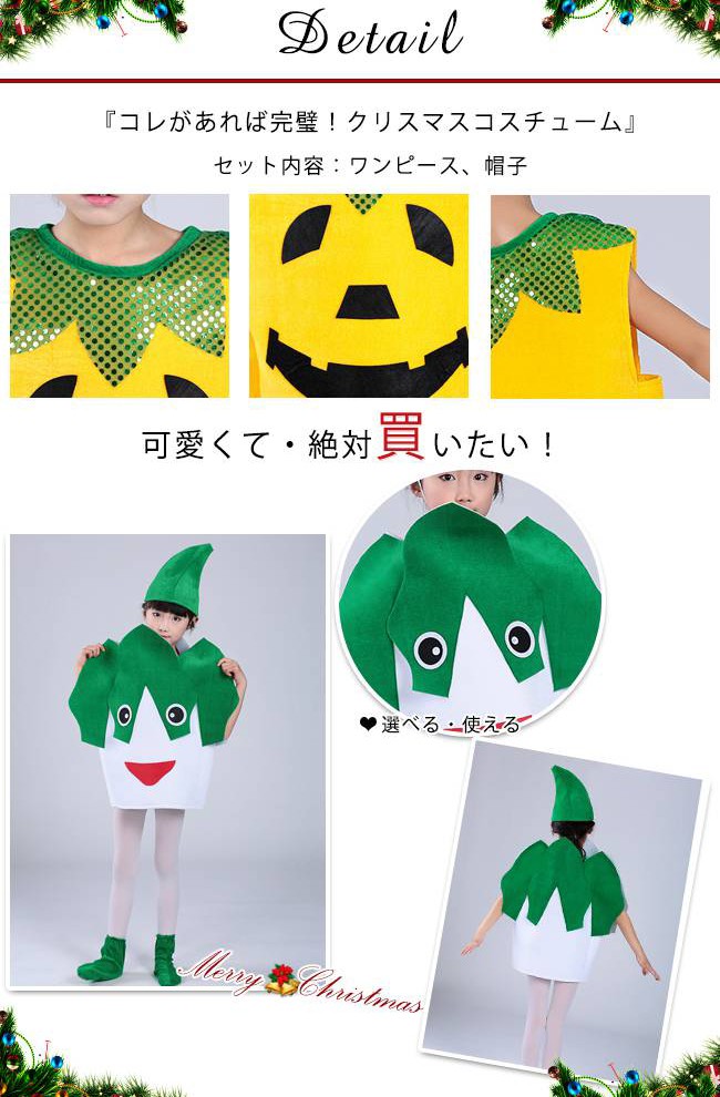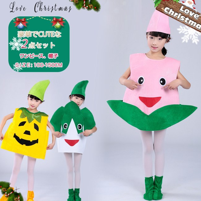 クリスマス コスプレ 子供 男の子 女の子 かぼちゃ パンプキン パクチヨイ モモ フルーツ 野菜 コスチューム 衣装 キッズ 子ども かわいい 仮装 変装 服 セットアップ パーティーグッズ イベント用品 ユニセックス xmas Christmas cos