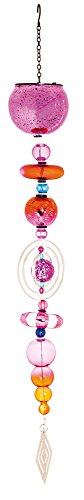 -. Feature : Dimensions: 4D x 23.75H in. / Glass globes attached to metal chain / Sparkling orange and pink orbs / Features silver colored diamond dangle / Solar panel feature illuminates orbs