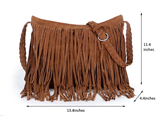 -. Brand : D'autres hauteurs -. Department : womens -. Feature : Top zipper closure;Inner one zipper pouch and 2 pockets / Size:14.2*10.6*4inches,Strap Length:24-45inches;Weight:470g / Package Includes: 1 x Women Shouldeer Bag -. ProductGroup : Shoes -. ProductTypeName : HANDBAG -. Title : D'autres hauteurs Hippie Suede Fringe Tassel Messenger Bag Women Hobo Shoulder Bags Crossbody Handbag 6 Colors