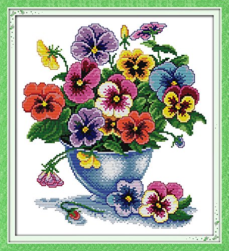 CaptainCrafts New Cross Stitch Kits Patterns Embroidery Kit - Six Color Flower (WHITE)