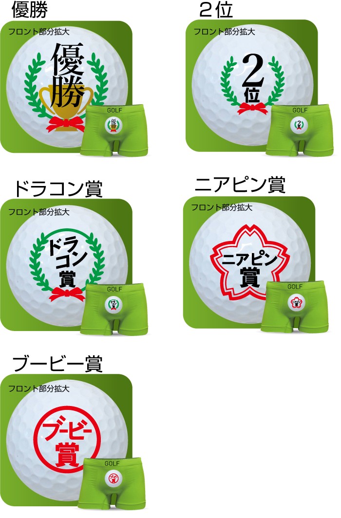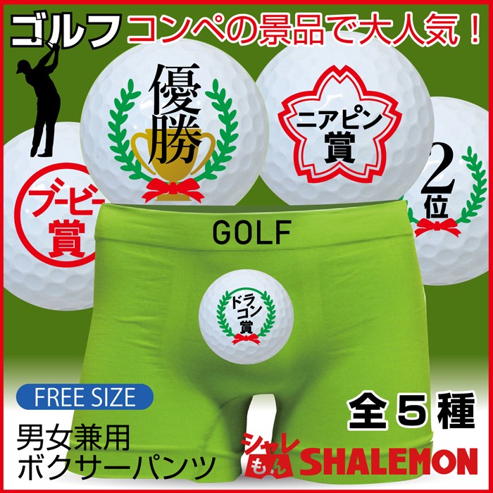 ゴルフコンペの景品に大人気!伸縮性の高いボクサーパンツは基本メンズ用フリーサイズですが、女性も履いていただけるスポーツ時に人気のシームレスタイプです。選べる5デザイン【優勝・2位・ドラコン賞・ニアピン賞・ブービー賞】からお選びいただけます。 ●フリーサイズ(ウエスト76~94cm)