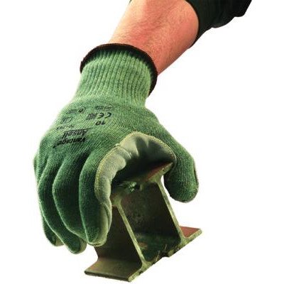 -. Title : Ansell Edmont 70-765-8 Kevlar Fiber Cut Resistant Gloves with Durable Leather Pad Double Stitched, Reinforced Thumb Crotch, Medium Weight, Vantage, 10 Gauge, Size 8, Green