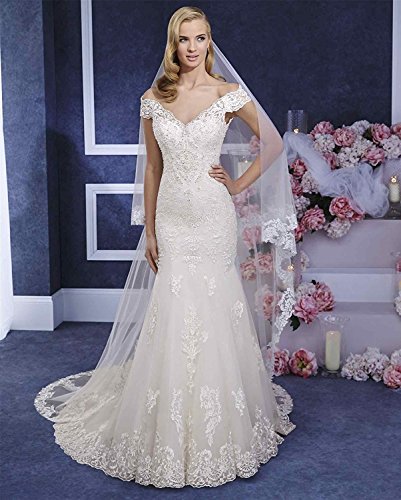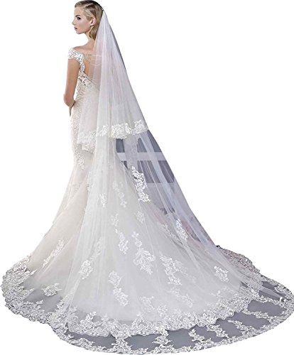 Fenghuavip 3 Meters 2 Tires Lace Appliqued Chapel Cathedral Bridal Veils