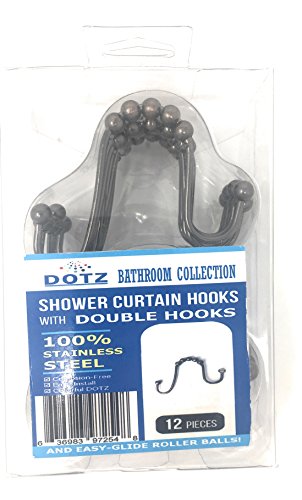 DOTZ Shower Curtain Ring, U-Shaped Double Hooks, Bronze, Pack of 12