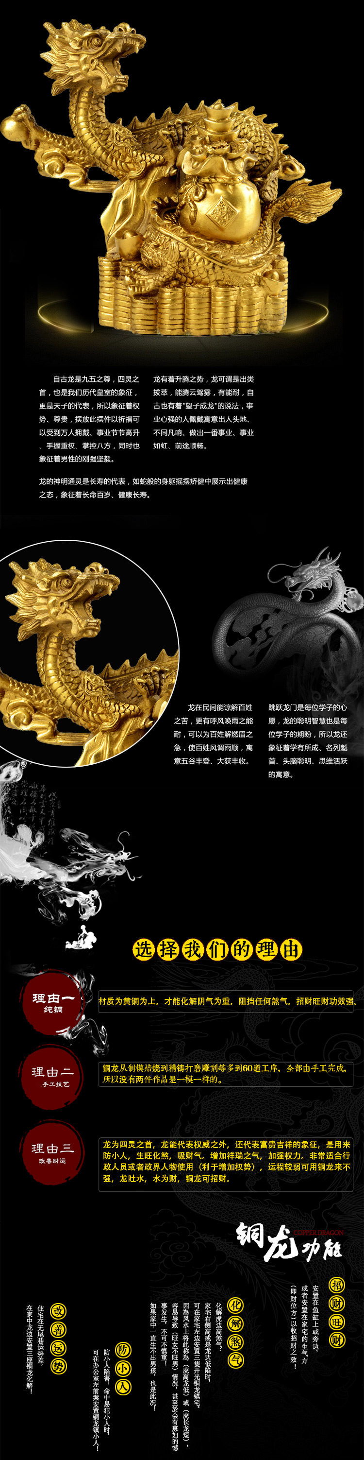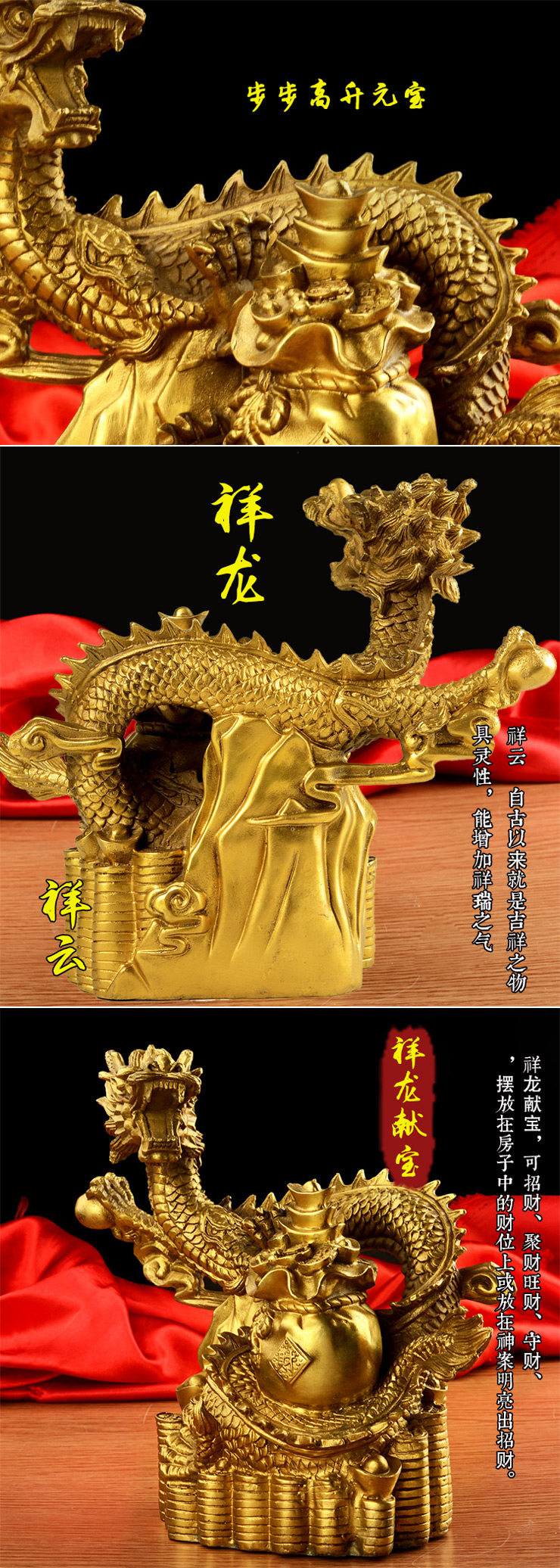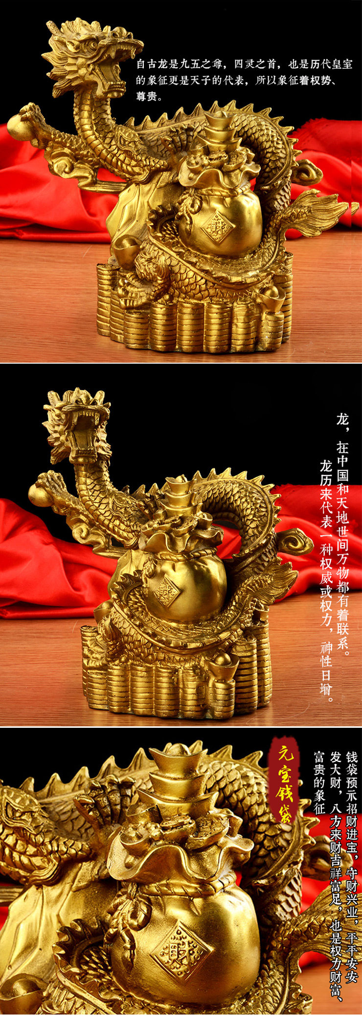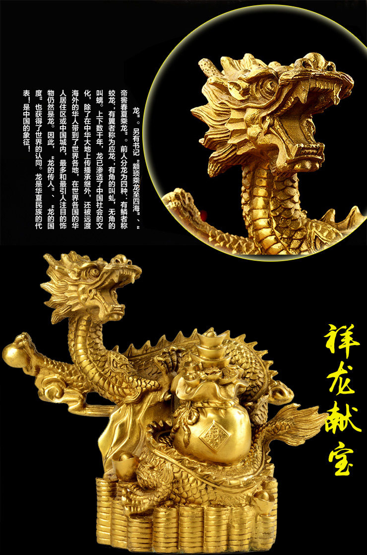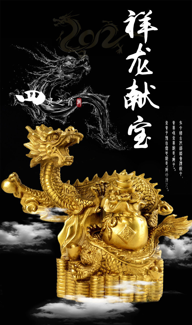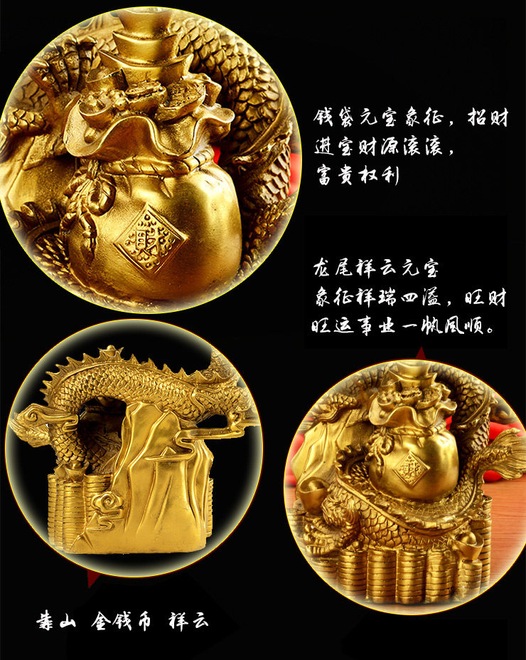 开光风水纯铜招财聚宝盆龙摆件铜龙家居办公摆件开业礼品