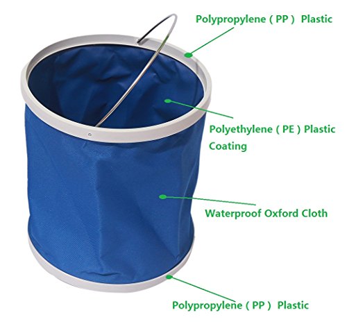 - Material:Environmental and No-toxic. Portable bucket with polyolefin material, Oxford cloth makes it safe and strong enough.