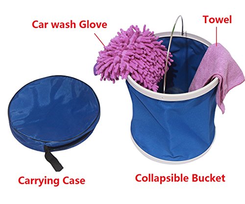 Qbreloh 11L Collapsible Bucket Water Bag with Car Wash Mitt and Towel, Waterproof Oxford Cloth Foldable, Portable Travel Outdoor Wash Basin with Carrying Case, Perfect for Car Washing, Fishing