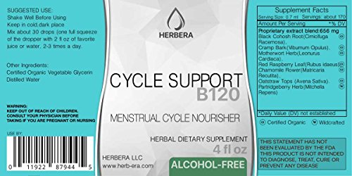 -. Title : Cycle Support Alcohol-FREE Herbal Extract Tincture, Organic (Organic: Black Cohosh, Cramp, Motherwort, Red Raspberry, Chamomile, Oatstraw, Wildcrafted (Partridgeberry))