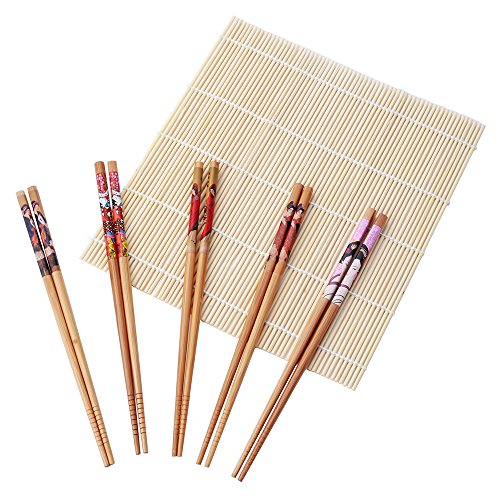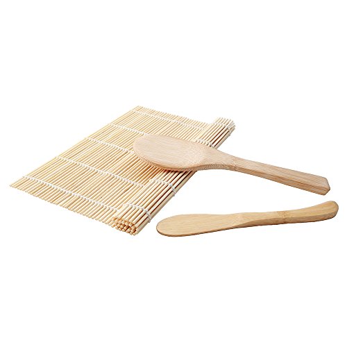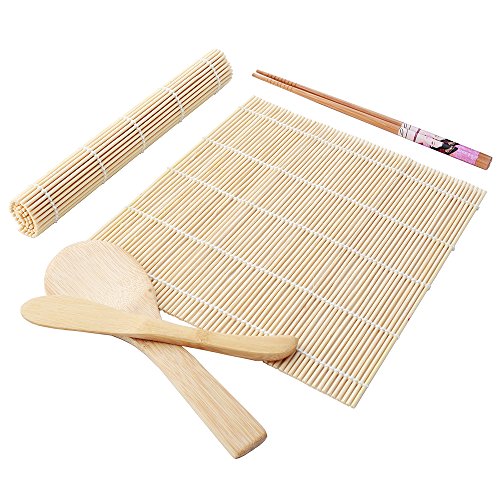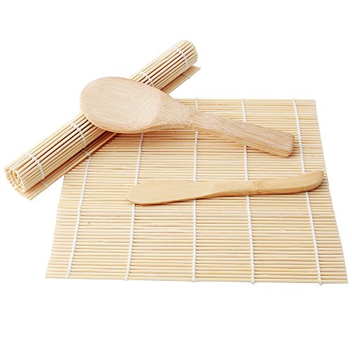 Studio : Haoren Publisher : Haoren Product Description This set of sushi making tool is made of natural bamboo, not only includes sushi maker's basic tools but also contain 5 pairs twisted chopsticks which can show you the ancient Chinese beauty. Bamboo is ideal material to delivering rice to a place and spreading it evenly without it sticking or clumping. NOTE These products is made of bamboo, normally, different set could have some color or grain differences. It is safe for use as long as there is no splits and perforations. Cleaning: Thoroughly clean and scrub it with mild soap and water, then dry thoroughly. Dishwasher isn't recommended. Maintain: Rubbing occasionally with food-safe oil to maintain product. Dry thoroughly otherwise it will grow mold. Keep away from heat. Package Included: 2 x Sushi Rolling Mats 5 x Chopsticks(pair) 1x Rice Spreader 1 x Rice Paddle 0