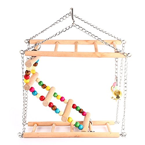 Pet Hanging Ladder Wooden Suspension Bridge Steps Stairs Climbing Swing Double-Layer Toys For Bird Parakeet Hamster Budgie Cockatiel Parrot Hammock Cage Toy