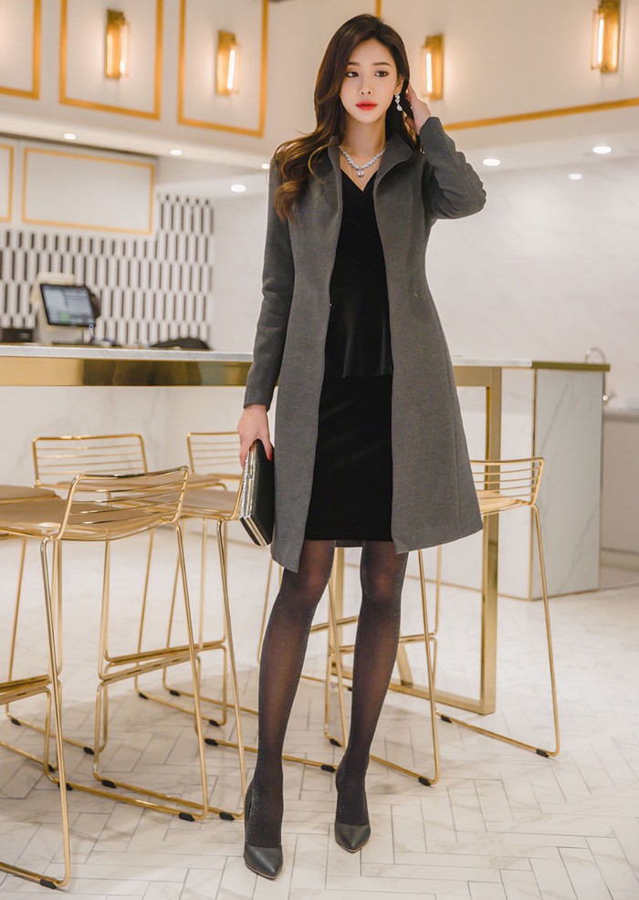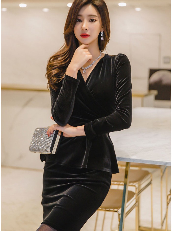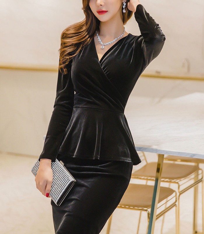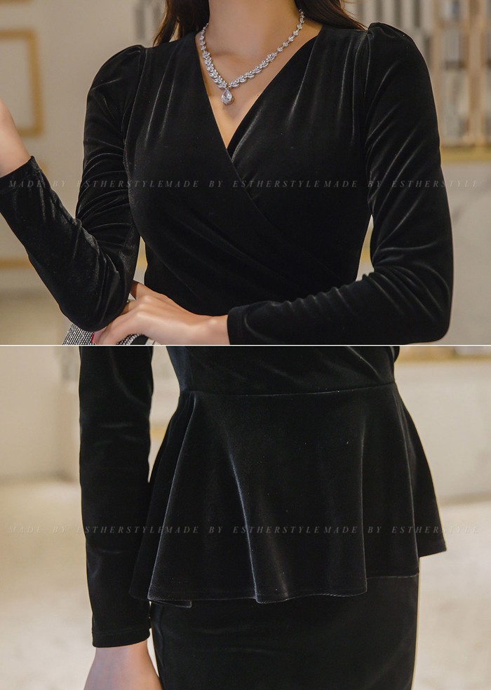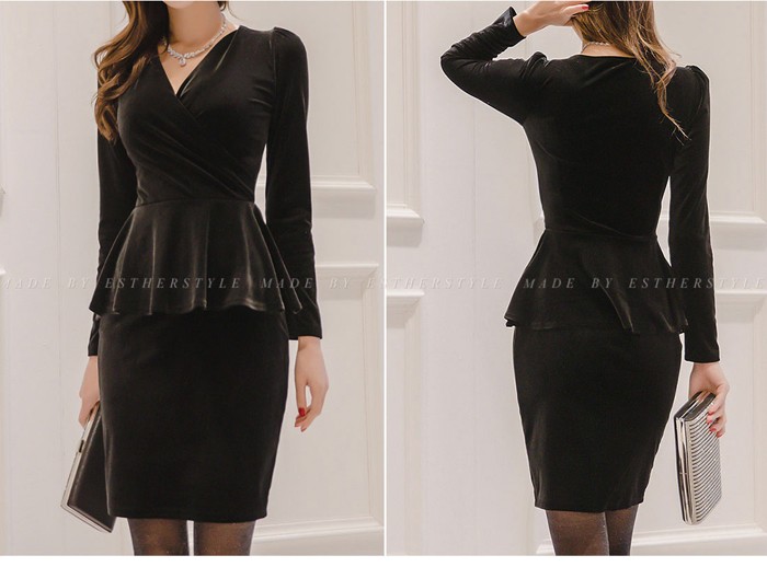 商品名:ワンピース カシュクール 無地 長袖 ミニ丈