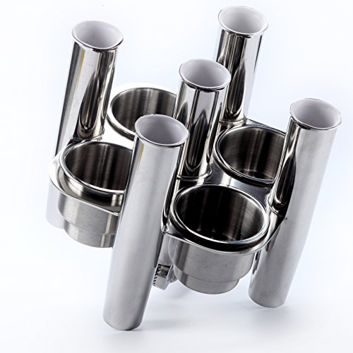 -. Title : Amarine-made Stainless Steel Collector 5 Rod Holders with 4 Cup Holders , Cluster Rod Holder, Angle Ajustable - Sh9965s