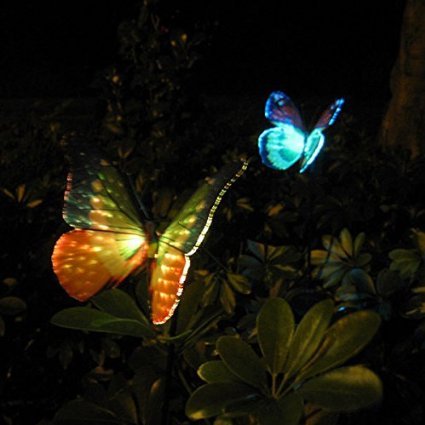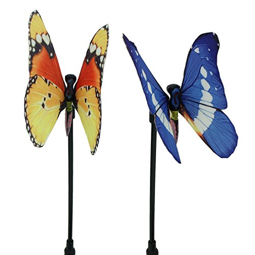 ALEKO SLLY132 Lot of 2 Solar Powered Butterfly LED Decorative Light Lamp for Outdoor Garden Fence Pathway Stairs Light Lamp Step Light