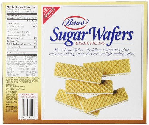 -. Feature : Case of six 8.5-ounce boxes of sugar wafers (51 total ounces) / Made from enriched wheat flour / Cholesterol-free and low in sodium / A sweet treat without the cholesterol / Individual packaging keeps wafers fresh
