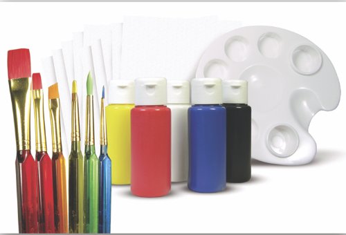 Young Artist will learn the ins and outs of creating painted works of art with this all inclusive set. Learn to mix and blend with the 5 colors of paint and palette, explore line thicknesses and texture with 6 unique brushes. Follow the illustrated instruction booklet and then explore on your own. A Top Seller and parent favorite!Feature