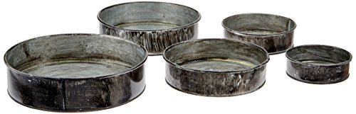 Zinc Vase, Trays with Industrial Looking Feel . Perfect for both indoor and outdoor use. These containers can easily be the top choice for outdoor or indoor decoration. This is set of 5 pcs, which you are getting 5 trays . First tray with H-2", D-8", Second, H-1.5", D-7", Third, H-1.5", D-6", Forth, H-1.25", D-5" and the fifth H-1", D-4"