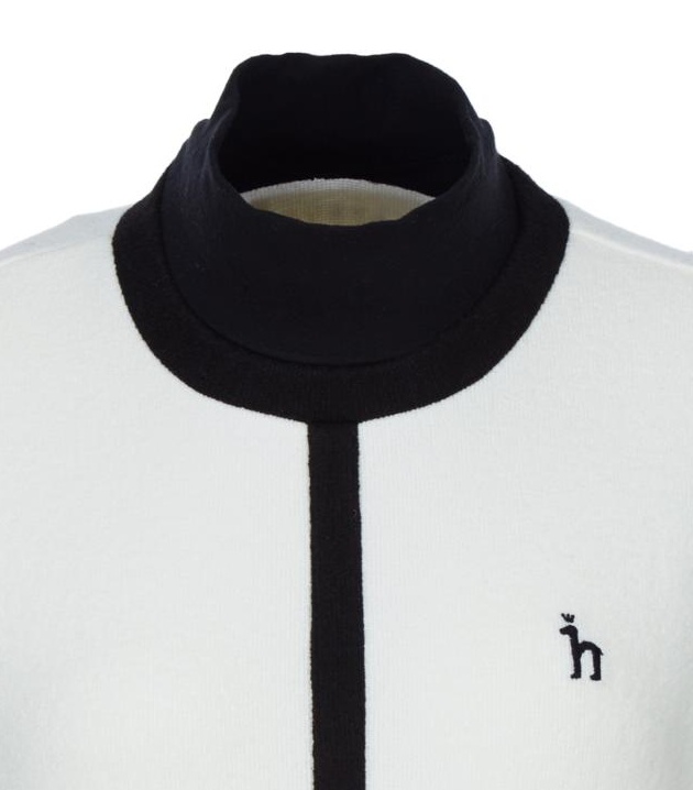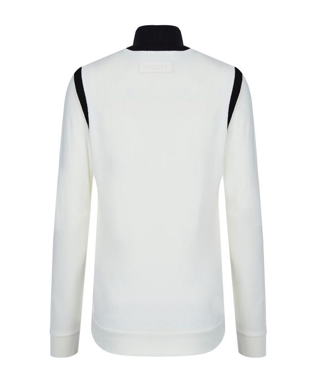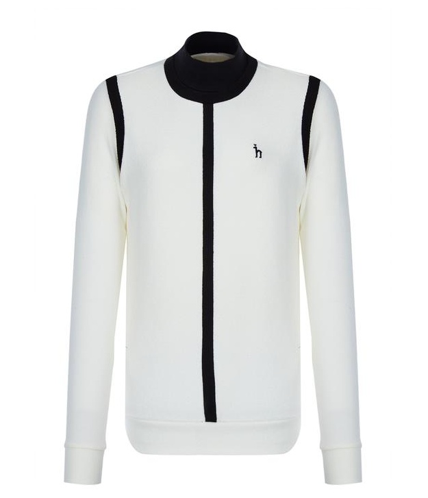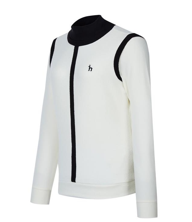 목을 감싸주는 하이넥 디자인의 컬러감이 돋보이는 라인 배색이 어우러저
