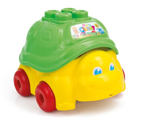 Turtle shaped box with wheels that contains 15 soft interlocking blocks in assorted colors Size 11.4x9.4x8.5.