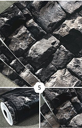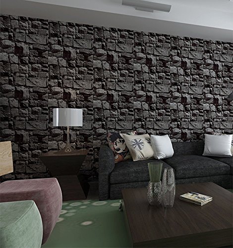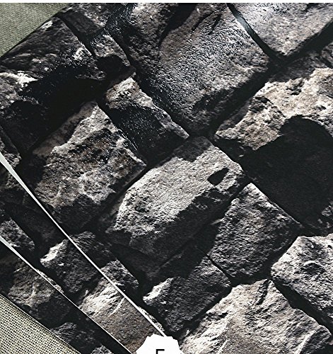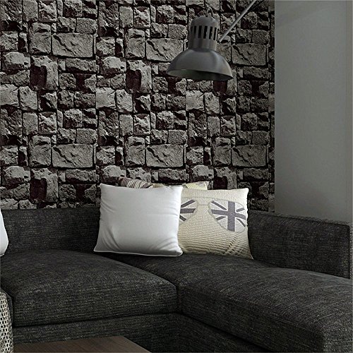 -. Title : Birwall 2015 Faux Stone Textured Wallpaper Roll 3d Brick Blocks Home Decoration,20.8" x 393.7",Dark Gray