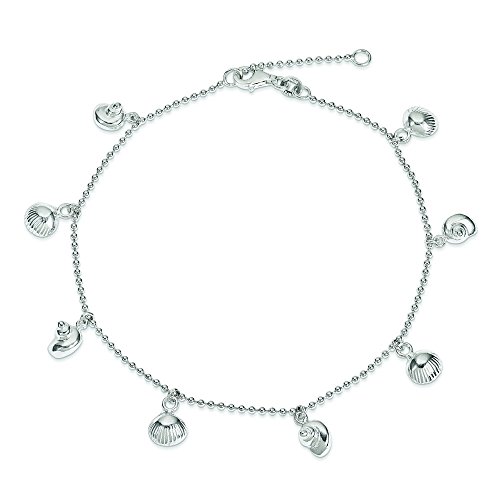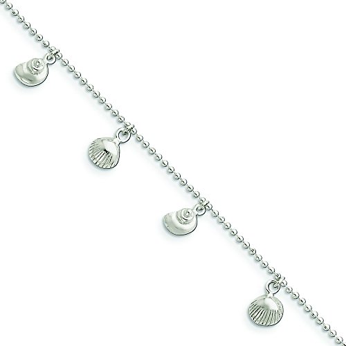 Sterling Silver Polished Sea Shell Anklet - 9 Inch - 6.7 Grams in Sterling Silver - JewelryWeb Style: QTA222525SS - FREE gift-ready jewelry box