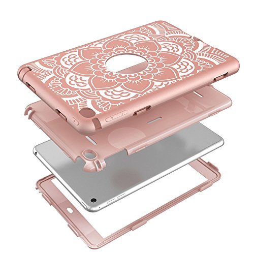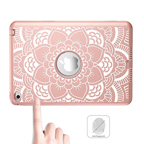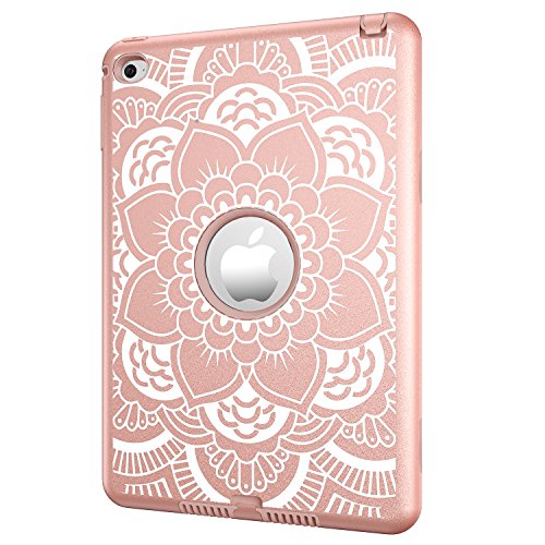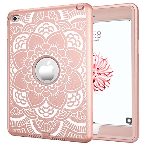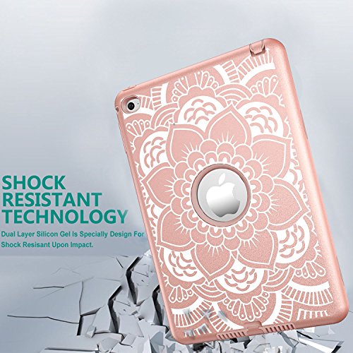 iPad mini 4 Case, Hocase Rugged Hybrid Double Layer Shockproof Protective Hard Rubber Case for Apple iPad mini 4 Retina - Rose Gold Flower
