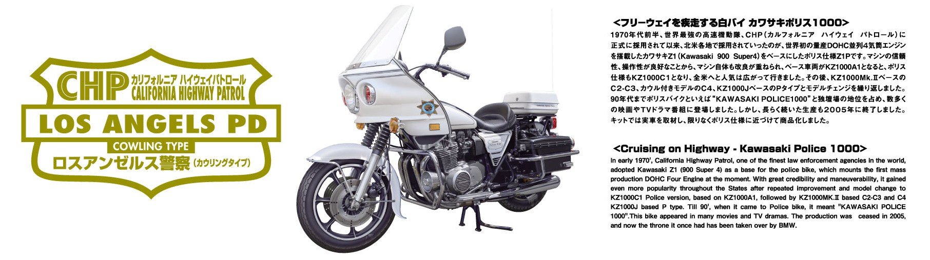 Aoshima Models AOS-003305 Kawasaki Police 1000 Cowling Type Motorcycle Model Building Kit 1/12 Scale